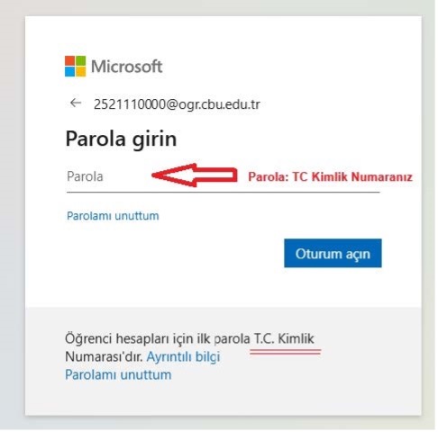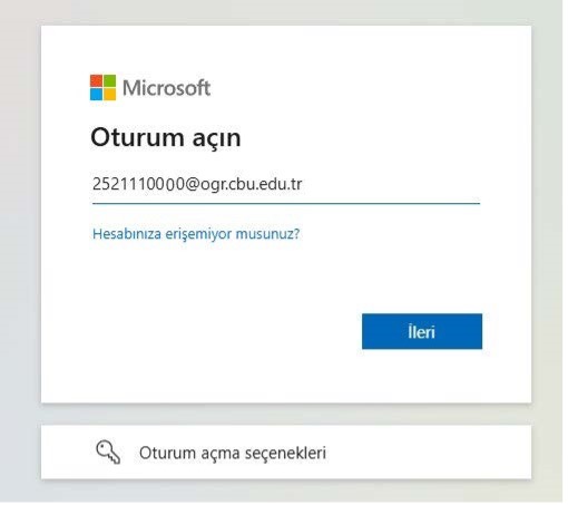 👤 Kullanıcı Adı: OgrenciNumaranız@ogr.cbu.edu.tr