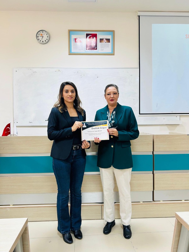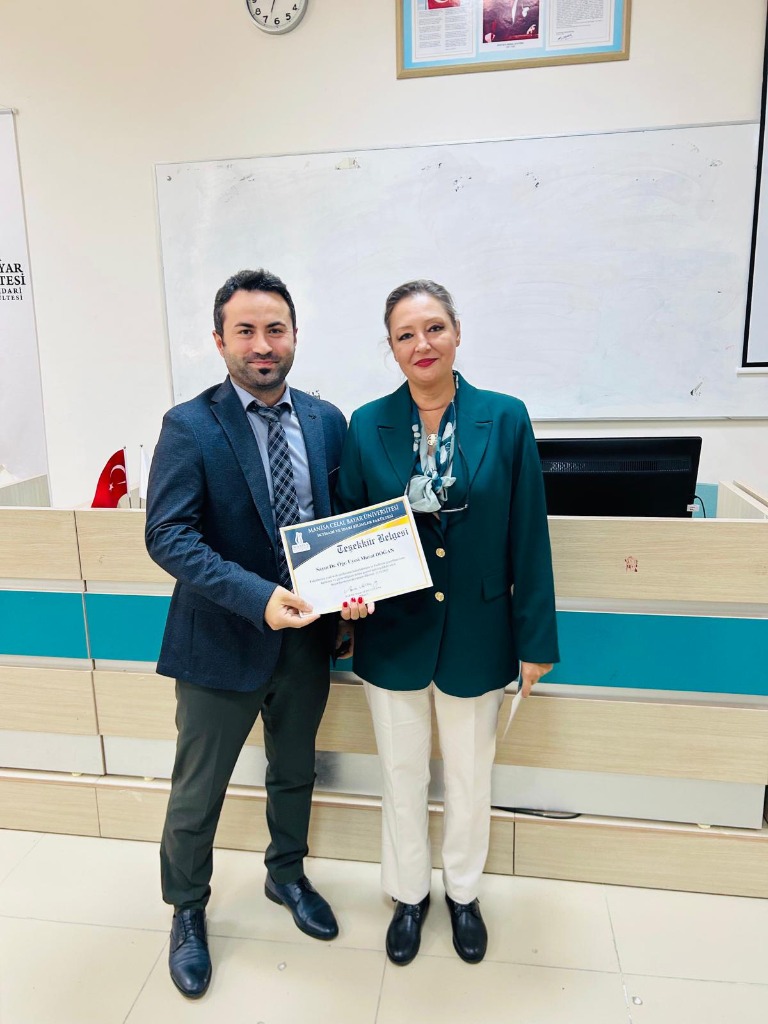 Toplantıda Fakültemiz yeni web sayfasının oluşturmasına katkıda bulunan Dekan Yardımcımız Dr. Öğr. Üyesi Murat DOĞAN ile Araş.Gör. Tuğba YILMAZ’a teşekkür belgeleri takdim edildi.